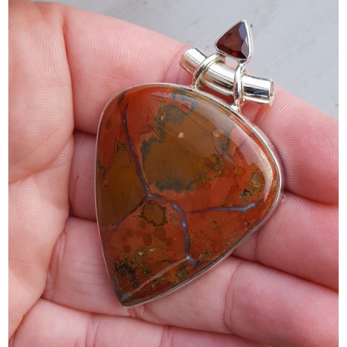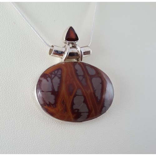 Mooie Sterling zilveren hanger gezet met Noreena Jaspis en Granaat.