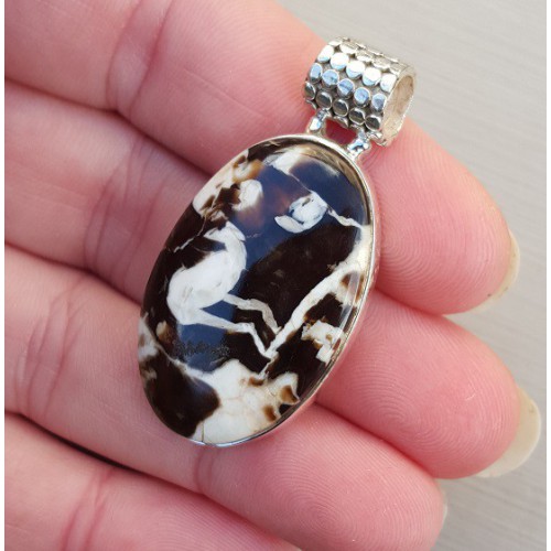 Mooie Sterling zilveren hanger gezet met Turitalla Agaat.