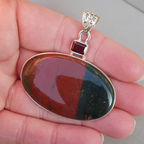 Mooie Sterling zilveren hanger gezet met Bloedsteen en Granaat.