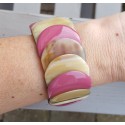 Mooie stretch armband van Buffelhoorn met paars gelakte schakels.