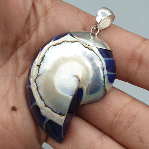 925 Sterling zilveren hanger met blauwe Nautilus schep.