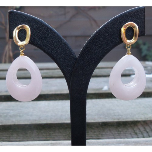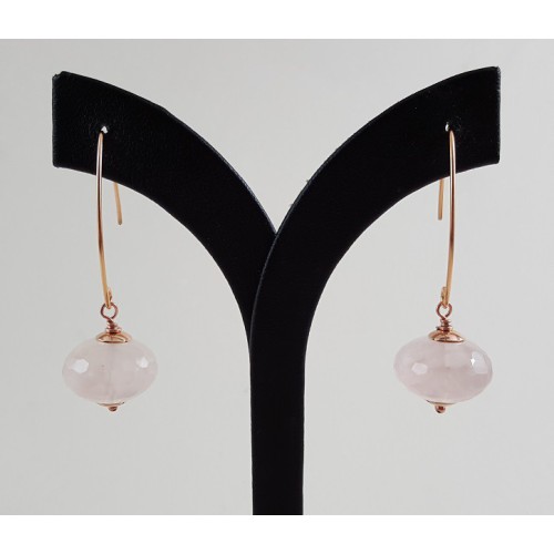 Mooie oorbellen met grote Rozenkwarts rondelle.