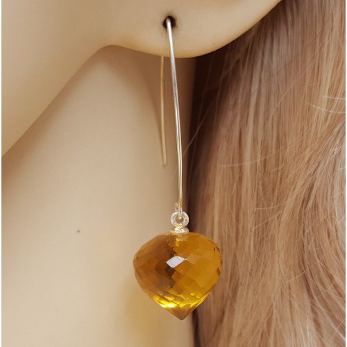 Mooie Sterling zilveren oorbellen met Citrien onion briolet.