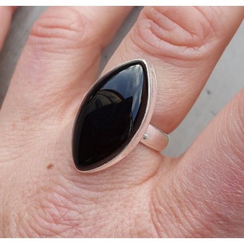 Mooie Sterling zilveren ring gezet met zwarte Onyx.