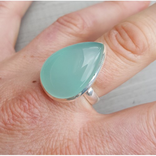 Mooie Sterling zilveren ring gezet met aqua Chalcedoon.