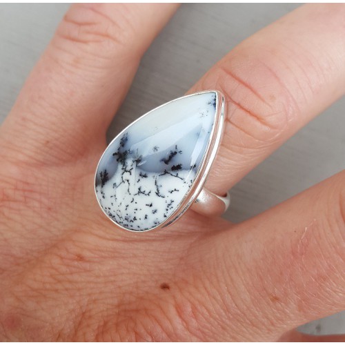 Mooie Sterling zilveren ring gezet met Dendriet Opaal.