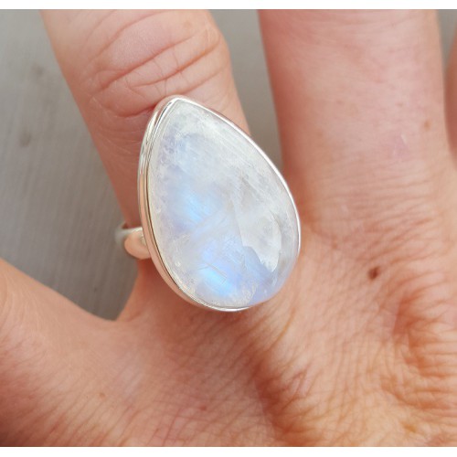 Mooie Sterling zilveren ring gezet met regenboog Maansteen.