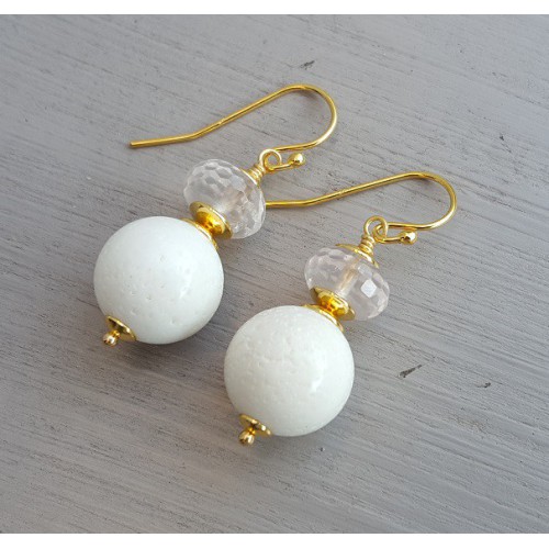Mooie oorbellen met wit Koraal en Rozenkwarts.