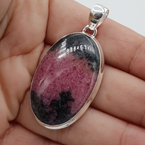 925 Sterling zilveren hanger gezet met Rhodoniet.