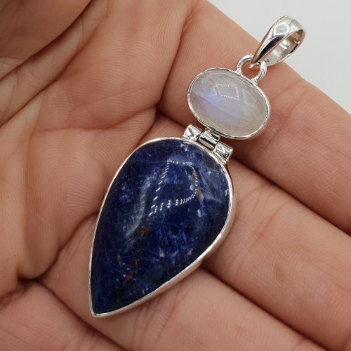 925 Sterling zilveren hanger gezet met Sodaliet en regenboog Maansteen.