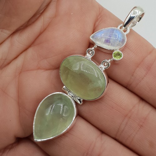 925 Sterling zilveren hanger gezet met Prehniet, regenboog Maansteen en Peridot.