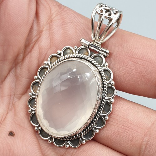 925 Sterling zilveren hanger met facet geslepen Rozenkwarts.