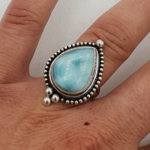 925 Sterling zilveren ring gezet met Cowrie schelp en Larimar.