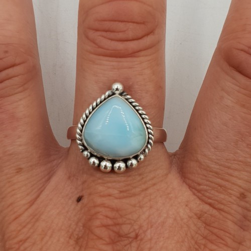925 Sterling zilveren ring gezet met aqua Chalcedoon.