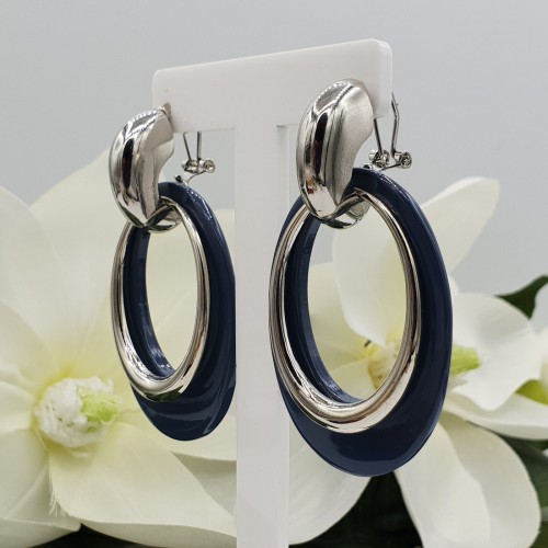 Mooie creolen met grote ovale hanger van jeans blauwe kristallen.