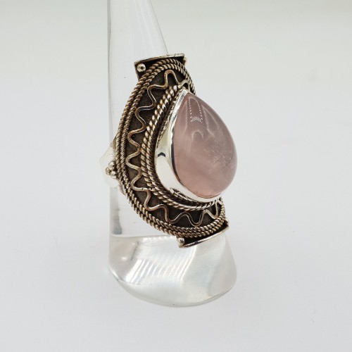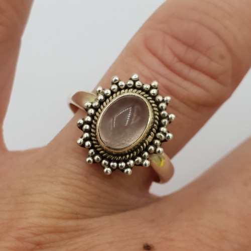 Mooie Sterling zilveren ring gezet met Rozenkwarts.