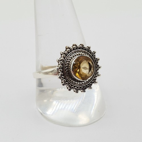 Mooie Sterling zilveren ring gezet met facet geslepen Citrien.