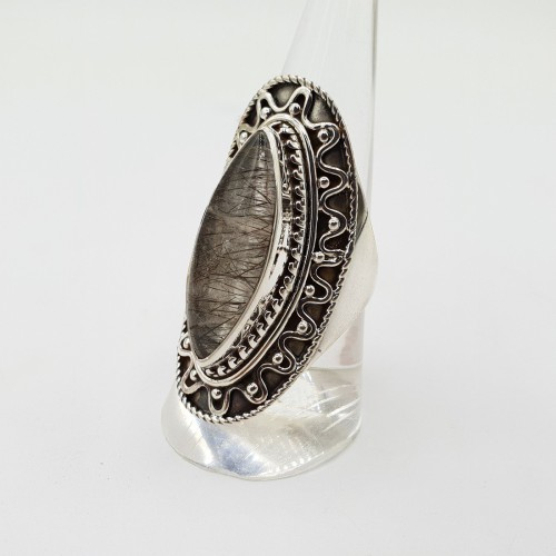 925 Sterling zilveren ring gezet met zwarte Toermalijnkwarts.