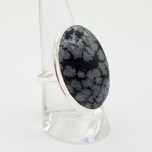 925 Sterling zilveren ring gezet met sneeuwvlok Obsidiaan.