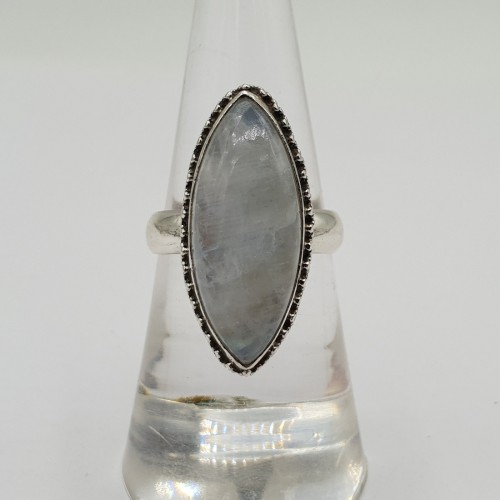 Mooie Sterling zilveren ring met regenboog Maansteen.