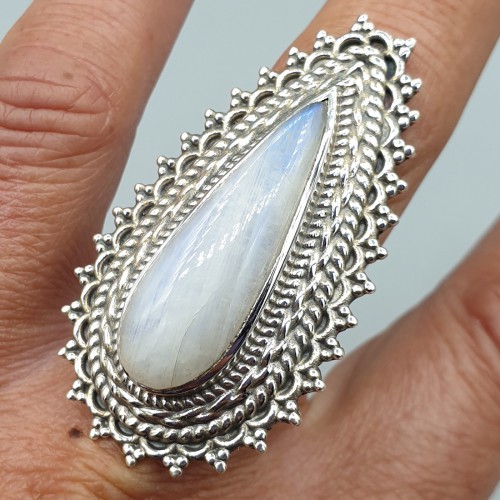925 Sterling zilveren ring gezet met regenboog Maansteen.