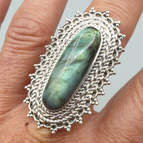 925 Sterling zilveren ring gezet met ronde facet geslepen Labradoriet.