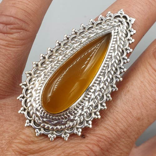 925 Sterling zilveren ring gezet met gele Chalcedoon.
