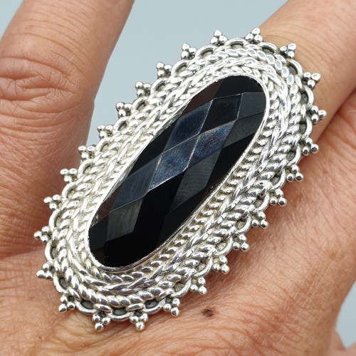 925 Sterling zilveren ring gezet met facet geslepen zwarte Onyx.