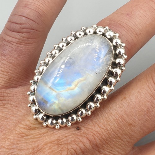 925 Sterling zilveren ring gezet met regenboog Maansteen.
