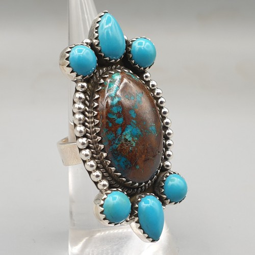 925 Sterling zilveren ring gezet met Chrysocolla en Turkoois.