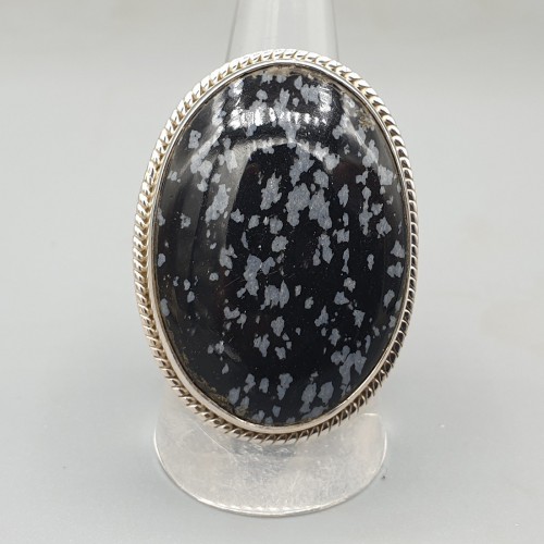 925 Sterling zilveren ring gezet met sneeuwvlok Obsidiaan.