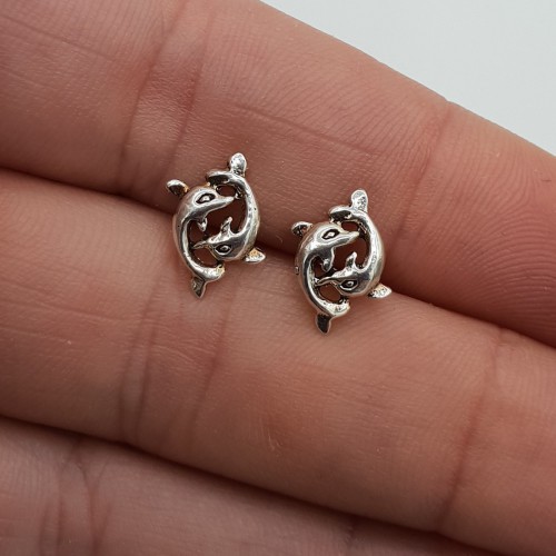 Mooie Sterling zilveren oorknoppen met twee dolfijnen.