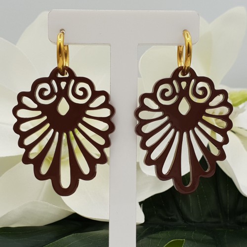 Mooie roestvrijstalen creolen (nikkelvrij) met gelakte hanger van Buffelhoorn.