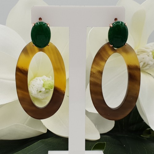 Mooie rosé Vergulde oorknoppen gezet met Aventurijn en ovale Buffelhoorn hanger.