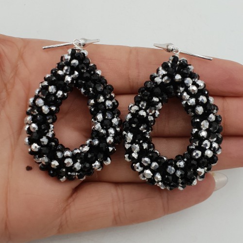 925 Sterling zilveren glassberry braam oorbellen met half zilver half zwarte kristallen.