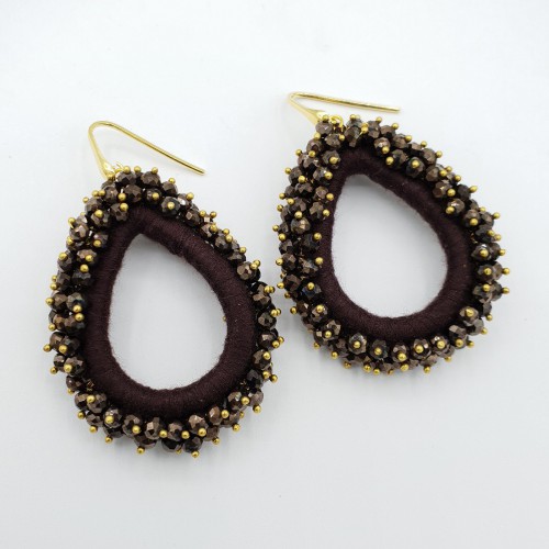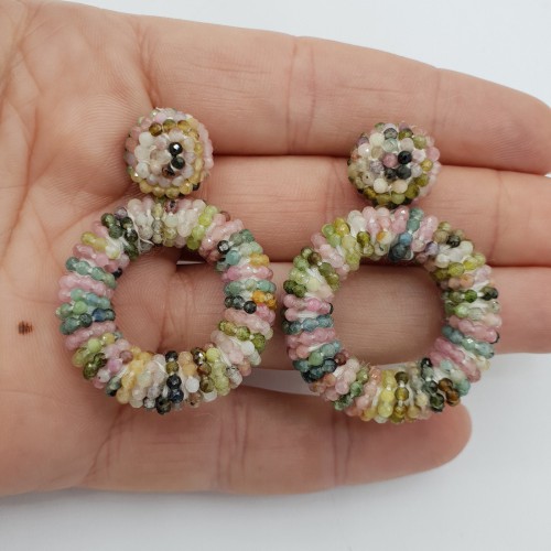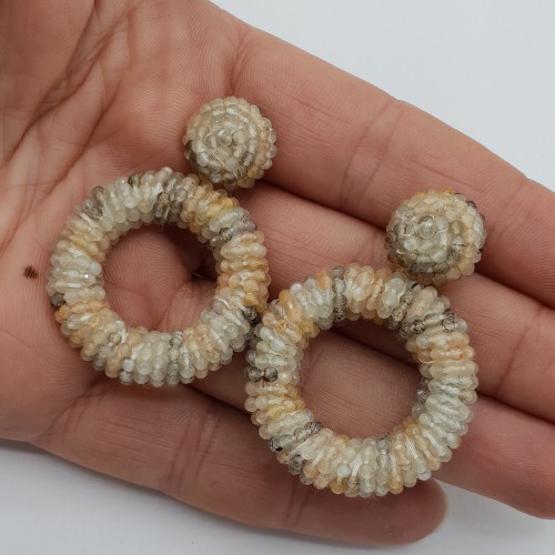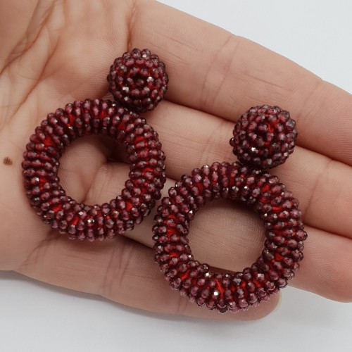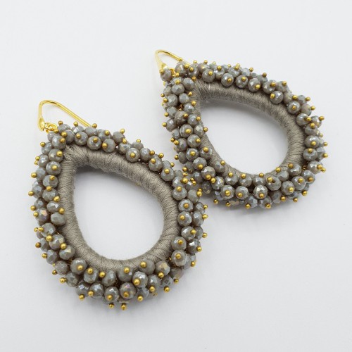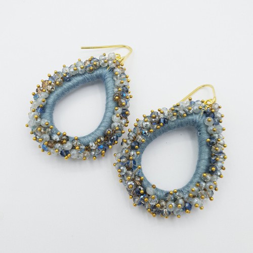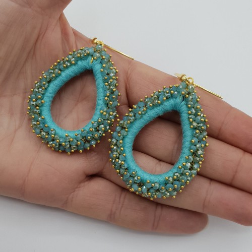 Mooie Sterling zilveren oorbellen met grote ronde circles van zijdedraad en kristallen.