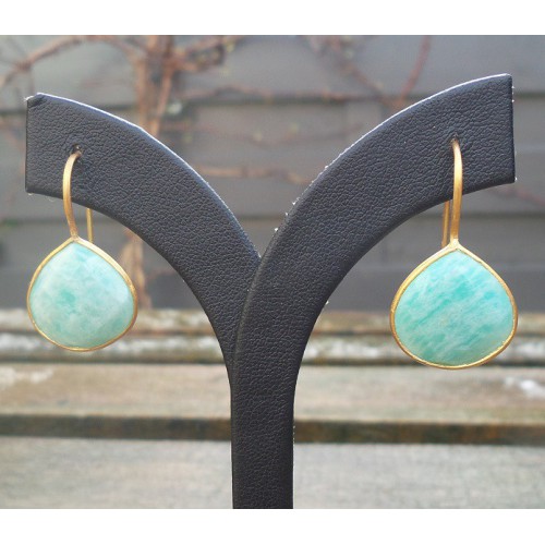 Mooie Vergulde (over Sterling zilver) oorbellen gezet met Amazoniet.