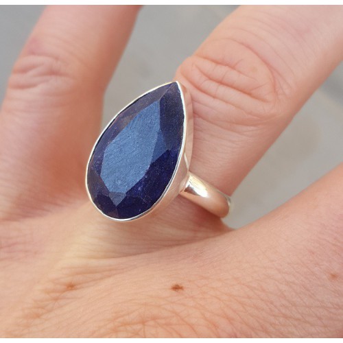 Mooie Sterling zilveren ring gezet met Saffier.