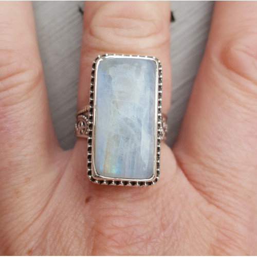 Mooie Sterling zilveren ring gezet met regenboog Maansteen.