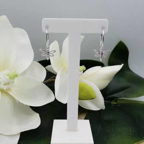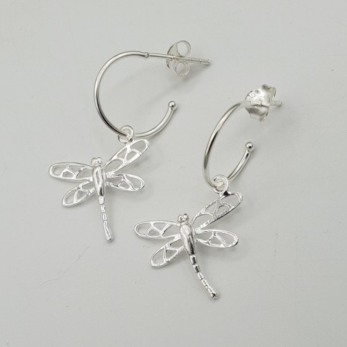 925 Sterling zilveren halve creolen met libellen hanger.