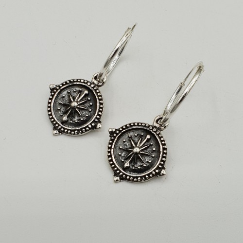 925 Sterling zilveren creolen met kompas hanger.