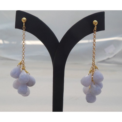 Mooie Vergulde (over Sterling zilver) oorbellen met blauw Lace Agaat briolettes.