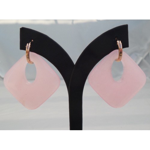 Mooie rosé vergulde creolen met licht roze Jade hanger.