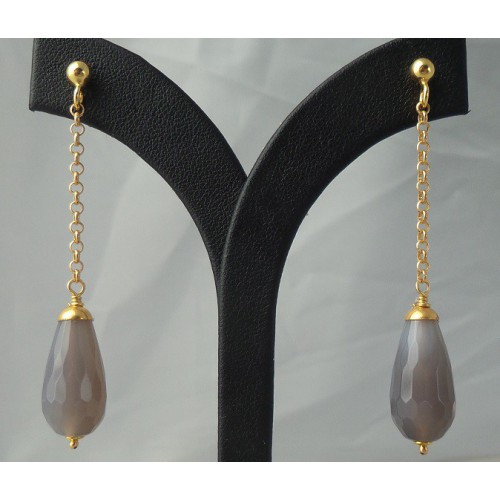 Mooie oorbellen van Sterling zilver en verguld met Vergulde met grijze Agaat briolet.
