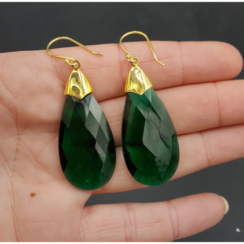 Mooie Vergulde (over Sterling zilver) oorbellen met grote Emerald groene quartz.