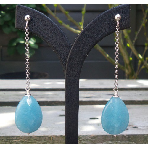 Mooie Sterling zilveren oorbellen met blauwe Jade briolet.