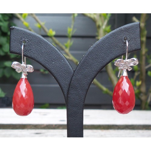 Mooie Sterling zilveren oorbellen met rode Onyx briolet.