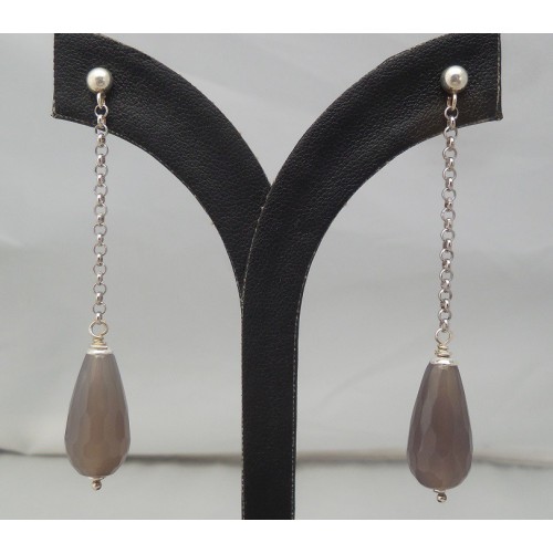 Mooie Sterling zilveren oorbellen met grijze Agaat briolet.