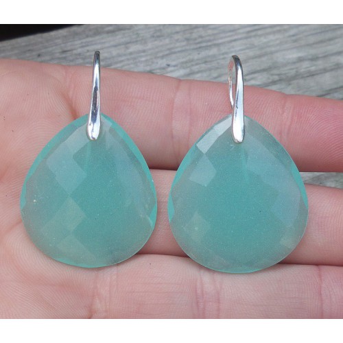 Mooie Sterling zilveren oorbellen met aqua Chalcedoon briolet.