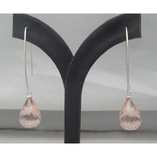 Mooie oorbellen van Sterling zilver en verguld met rosé goud met facet geslepen Rozenkwarts en ronde uitgesneden Rozenkwarts.